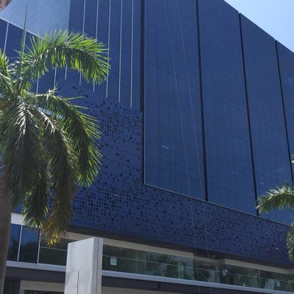 Ubicación Costa del Este, Panamá Descripción 3600m2 de Curtain Wall Sistema IMY-115@ de junta cerrada con manejo de agua. Decorativos verticales en aluminio. Sistema Fullview en cristales y acero inox. Estudio Mallol – Mallol. Constructora RM Ver Obra en MapaGalería Project navigation