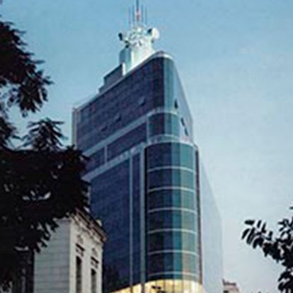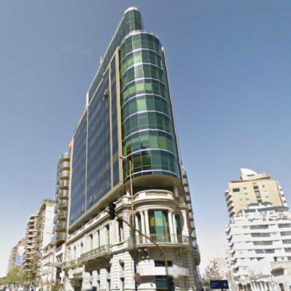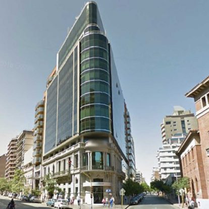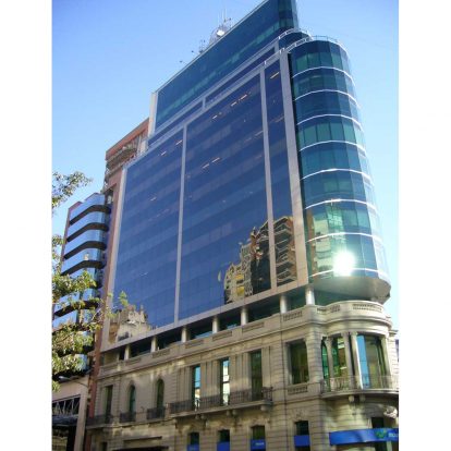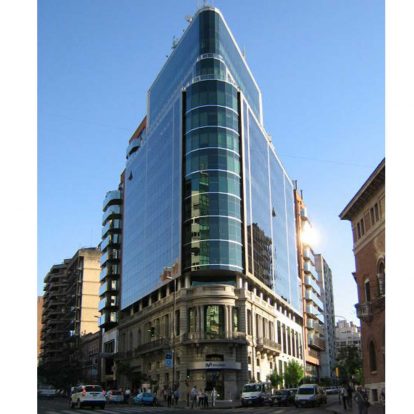 Torre construída sobre basamento histórico reciclado. 3200m2 de Curtain Wall unitizado serie IMY-115®, planos y facetados con juego de filos y volúmenes escalonados. 420m2 de revestimiento en composite de aluminio Alpolic Kynar Light Bronze Metalic – Champagne Metalic – Silver Metalic, en fachadas, techo metálico con pendiente y ochava curva, cielorrasos y columnas exteriores, y remate del edificio.