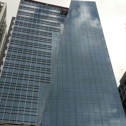 9900m2 de Curtain Wall Sistema IMY-115@ de junta cerrada con manejo de agua. Decorativos verticales y horizontales en aluminio. Composite.