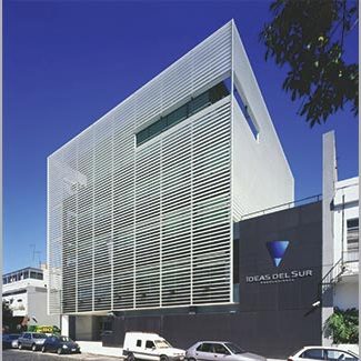 Descripción 625 m2 de Curtain Wall unitizado con decorativo horizontal Sistema IMY-115® situado entre losas y retirado de la línea de frente. Todo el sistema está envuelto por una pantalla de parasoles de aluminio pintado Kynar, de resolusión específica según diseño propio del estudio de arquitectos. 40 m² de Carpintería de Acceso de acero inoxidable y cristales templados serigrafiados. 105 m² de Techo vidriado con cristal laminado templado Eclipse Evergreen 6+6mm