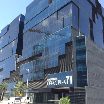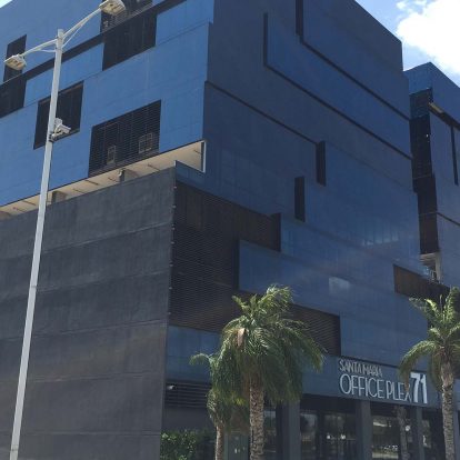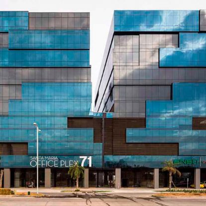 11800m2  de Curtain Wall Sistema IMY-115@ de junta cerrada con manejo de agua. Louvers en tablillas de aluminio.